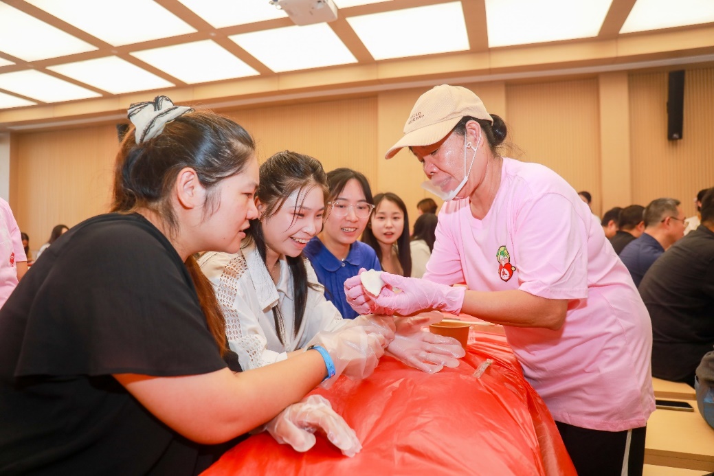 畫家工作室裡,藝術創作者敞開創作“後臺”,向澳科大師生們分享藝術靈感與創作心得;非遺茶果製作區,大家在揉捏搓捻間,感受民俗技藝的溫度;版畫拓印環節,大家以木為刀,以墨為魂,體驗古老技藝的脈搏在指尖煥發生機。從指尖到心靈,青年學子沉浸式感受著那洲的藝術氣息與文化底蘊。