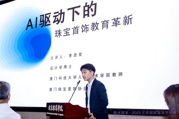 2025 年10月19日上午2025 北京國際首飾藝術展在北京盛大啓幕。作爲全球珠寶首飾藝術領域的高端交流平台,本次展覽彙聚了來自十七個國家和地區的行業教育家、藝術家及從業者,共同探討首飾藝術創新方向與設計教育發展路徑。澳門科技大學人文藝術學院設計學專業李登登老師受邀參會,並在核心環節分享首飾設計教育經驗,其指導的三組學生 AI 設計作品亦成功入選展陳,成爲展會焦點之一。