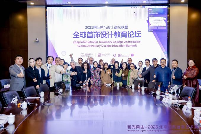 2025 年10月19日上午2025 北京国际首饰艺术展在北京盛大启幕。作为全球珠宝首饰艺术领域的高端交流平台,本次展览汇聚了来自十七个国家和地区的行业教育家、艺术家及从业者,共同探讨首饰艺术创新方向与设计教育发展路径。澳门科技大学人文艺术学院设计学专业李登登老师受邀参会,并在核心环节分享首饰设计教育经验,其指导的三組学生 AI 设计作品亦成功入选展陈,成为展会焦点之一。