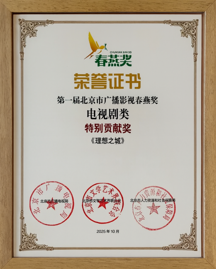 本届“春燕奖”由北京市广播电视局、北京市文学艺术界联合会、北京市人力资源和社会保障局联合主办,是经中共北京市委、市政府批准设立的北京地区唯一由政府主导的广播影视类综合性奖项,具有极高的权威性与行业影响力。获奖作品《理想之城》在众多入围作品中脱颖而出,体现了首都影视创作的精品水平和现实题材创作的标杆力量。