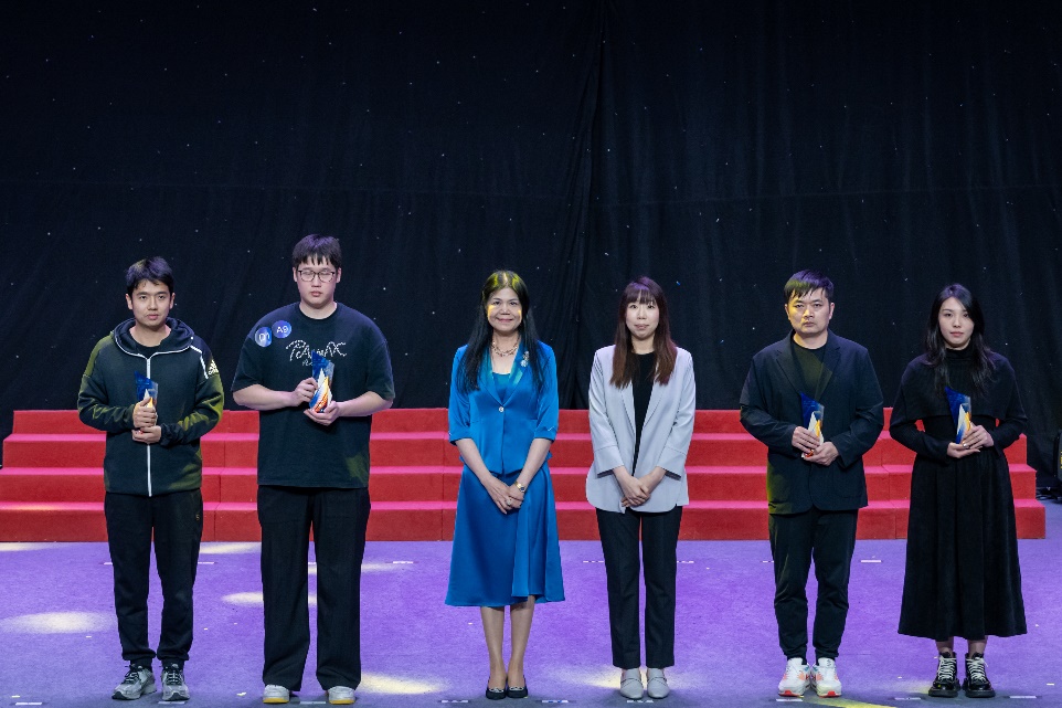 黃藹苓處長(右三)與梁文慧協理副校長(左三) 共同頒發一等獎獎項
