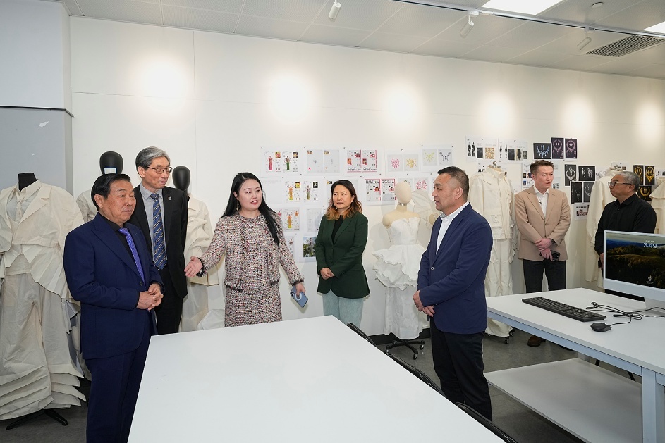 随后,庞川副校长与薛家宝校长共同为时尚设计实验室揭牌,全体嘉宾共同见证这一重要时刻并合影留念。揭牌仪式结束后,与会嘉宾前往位于澳科大R座632的实验室参观。实验室占地面积约120平方米,挑高3米,可同时容纳40名学生开展教学实践。室内配备了覆盖时尚设计全流程的专业设备,既能为《时尚设计》、《产品研发设计》、《奢侈品品牌策略》等本硕博德层次课程提供沉浸式教学场景,也能为可持续面料应用、智能设计技术融合等前沿科研课题提供坚实支撑。