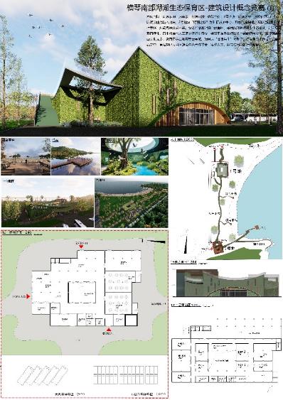 張天譯團隊的設計方案以生態完整性與低干預為首要原則,建築順應原有地形與植被格局,通過架空體量、點狀落地與連續生態廊道的佈局方式,最大限度減少對濕地生境與鳥類飛行通廊的干擾,保障潟湖生態系統的連續性與穩定性。朱廣森團隊的設計方案以“風浪棲羽”為意象,1號地塊“風浪之核”為文化展示中心,以海浪曲線融入地景;2號地塊“棲羽之核”為科研救護中心,形如飛鳥展翅。採用預製組裝、垂直綠化、雨水收集與人工濕地閉環水系統,並運用鳥類友好玻璃與智慧調控技術,減少生態干擾。體現“隱逸共生”哲學,將綠色技術隱匿於詩意形態之中。沈淩睿團隊的設計方案以 “藏”為體,以“環”為用。覆土建築體現了對大地生態的最大謙遜,而拔高的圓環則象徵著人類理性觀察與生態關懷的輕盈姿態。不僅是功能的集合,更是一次關於隱匿與呈現、大地與天空、人類與候鳥的深層空間對話,旨在為橫琴潟湖塑造一個真正具有示範意義的、融於環境的生命庇護所與科研教育基地。