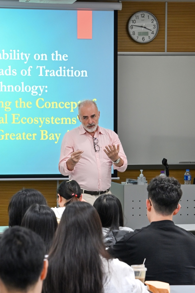讲座中,Schippers教授以生态视角深度剖析了音乐传统在当代社会面临的存续挑战,围绕着五个关键反思展开,探讨了当代音乐传统存续的关键问题,例如音乐如何比以往都能更加广泛地传播和获取,但是许多社区在维护其音乐传统方面仍然面临重大挑战。他提出的「音乐生态系统」框架,将音乐视为一个涵盖学习过程、艺术家、社区、价值观与制度的动态网络,而非单纯的音响产品。此框架为理解与支持音乐传统提供了全新的路径。讲座最后聚焦于粤港澳大湾区,探讨此丰富文化遗产区域如何应用生态模式,平衡创新与传承。