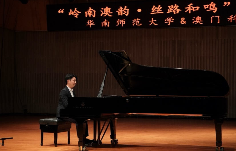 為深化粵港澳大灣區音樂高等教育合作,推動跨學科音樂創新與科技賦能,2025年12月11日,澳門科技大學音樂學院師生代表團應邀訪問華南師範大學音樂學院。本次活動依托教育部「內地與港澳高等學校師生交流計劃」,由華南師範大學音樂學院教授郭玉擔任項目負責人。澳科大音樂學院講師謝昕率領音樂學院2024級、2025級博士及碩士生共14人出席。此次交流活動立足前沿學術視野與藝術實踐,旨在匯聚兩地師生智慧,共同探索傳統與當代音樂領域的交融創新,活動包括兩大板塊:「智繪樂韻·科藝融合」學術論壇與「嶺南澳韻·絲路和鳴」交流音樂會。