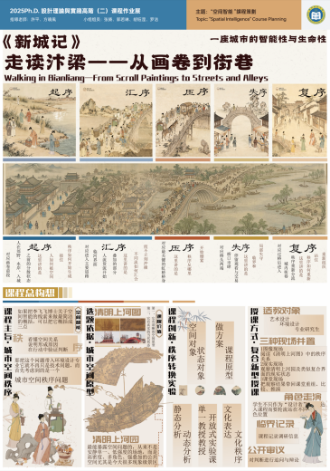 该课题以《清明上河图》为城市空间原型的“数据源”,通过对画卷中“起、汇、压、失、复”五种秩序的解析,探索从古代画卷到现代街巷的空间秩序转换规律。课题通过“三种现场并置”与“角色走演”的颠覆式授课方式,将静态历史图像转化为动态的空间秩序实验,利用空间智能对“秩序失稳”进行预见与策略生成,为现代城市空间秩序的修复提供了极具深度的历史参照与算法逻辑。