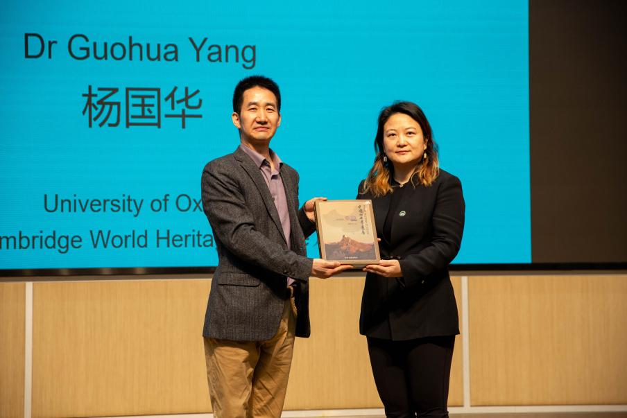 杨国华博士(左一)回赠图书《中国的世界遗产》