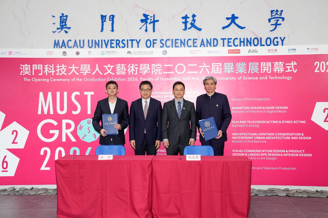 由澳门科技大学人文艺术学院主办的「MUST GROW 2026届毕业展」于4月15日在澳科大R座大堂举行开幕仪式,展出本年度毕业生精心创作的逾五百幅(组)作品,延续学院一年一度的毕业创作展传统。本届展览是人文艺术学院连续举办的第15届毕业生汇报展,全面呈现本科、硕士及博士毕业生在学期间艺术探索与设计实践的阶段性成果。