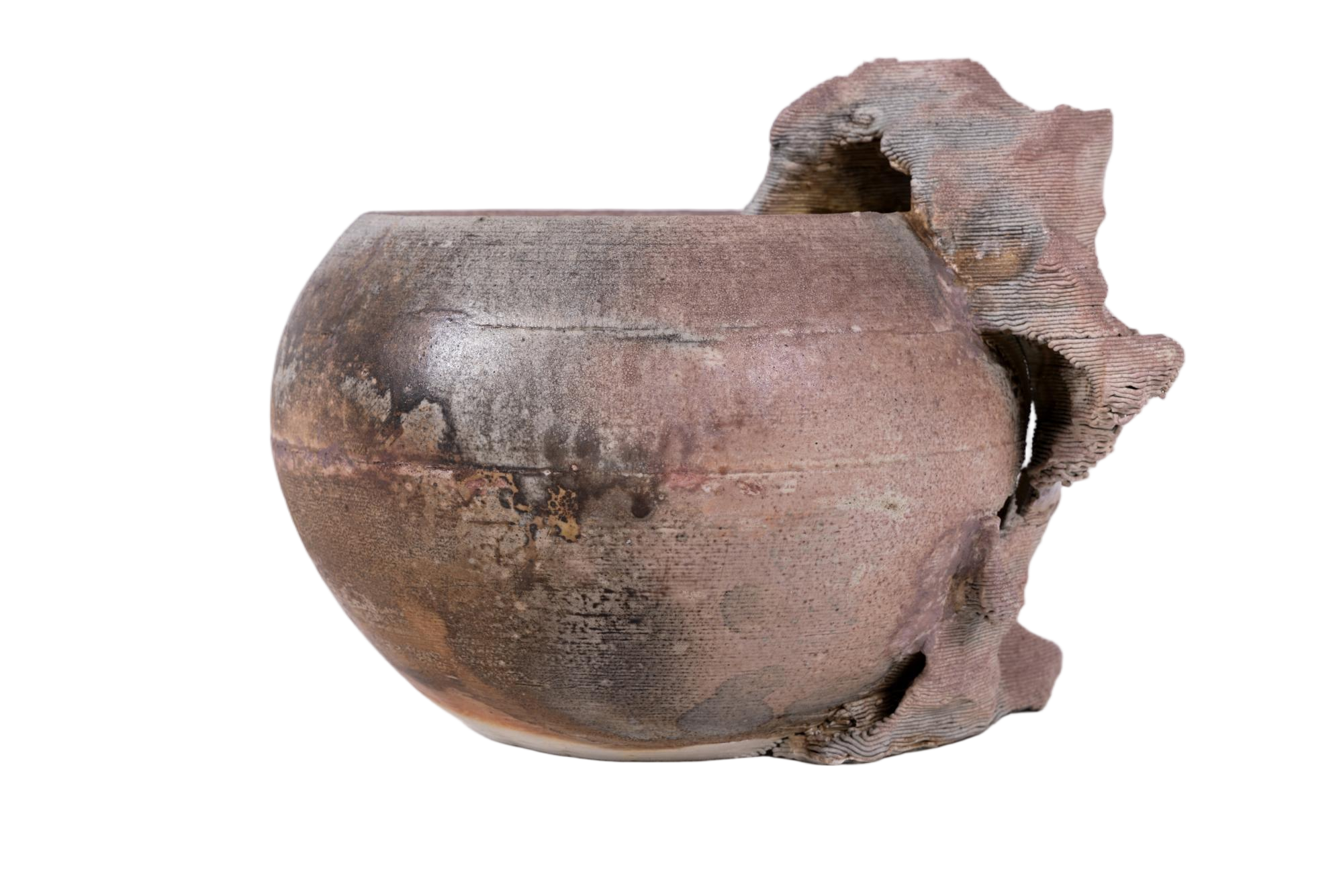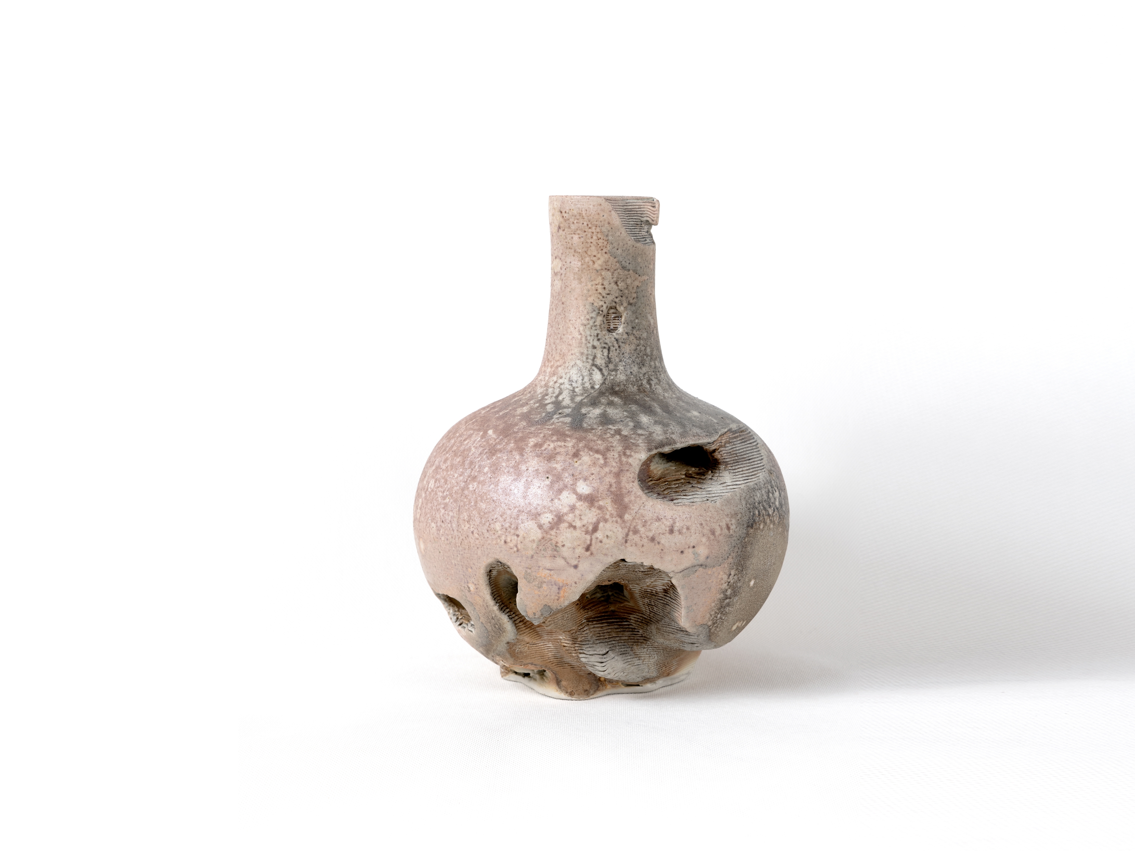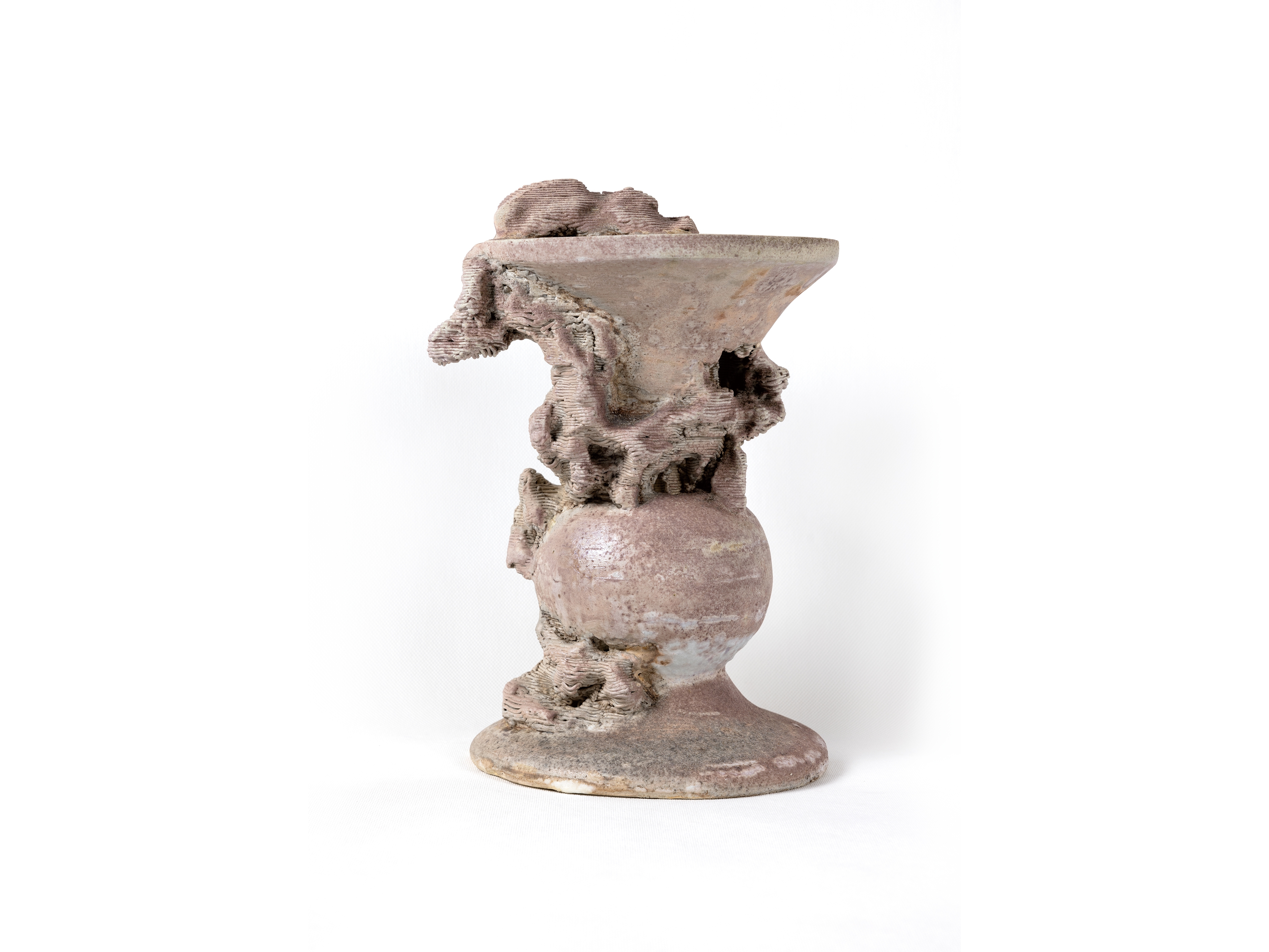 王欣此次入选作品为“静·石语”系列。该系列以太湖石的自然形态为核心意象,以陶瓷为媒介,通过泥条层层迭加的塑造方式呼应太湖石历经岁月洗礼后形成的肌理与孔隙结构,并采用柴窑烧制,使窑火穿透其间,转化出丰富而自然的视觉效果。作品在偶然与必然之间寻求平衡,重塑了陶瓷艺术中水、火、土交融生成的独特美感,呈现出自然意象、人文思考与当代陶艺语言之间的深层对话。