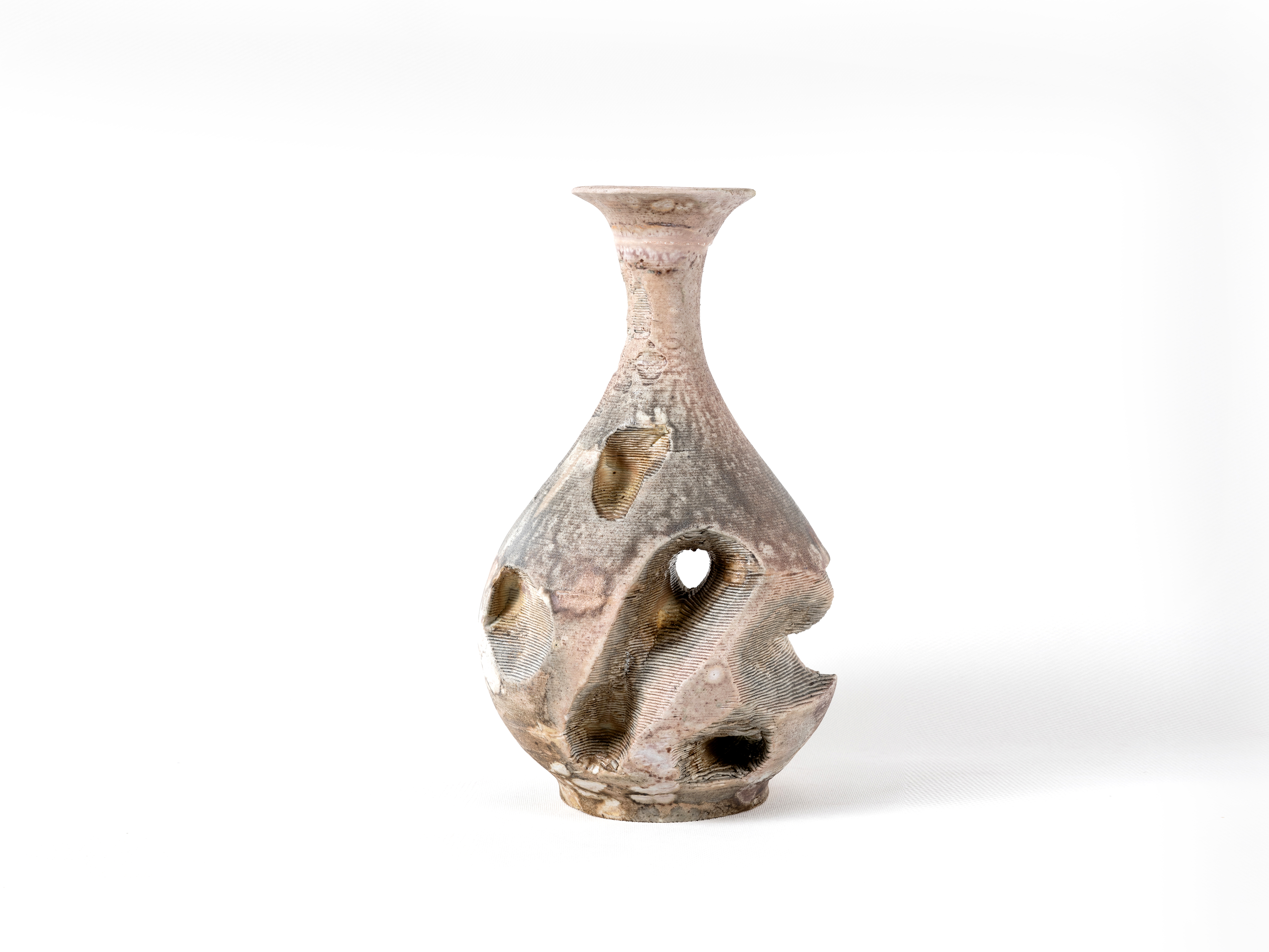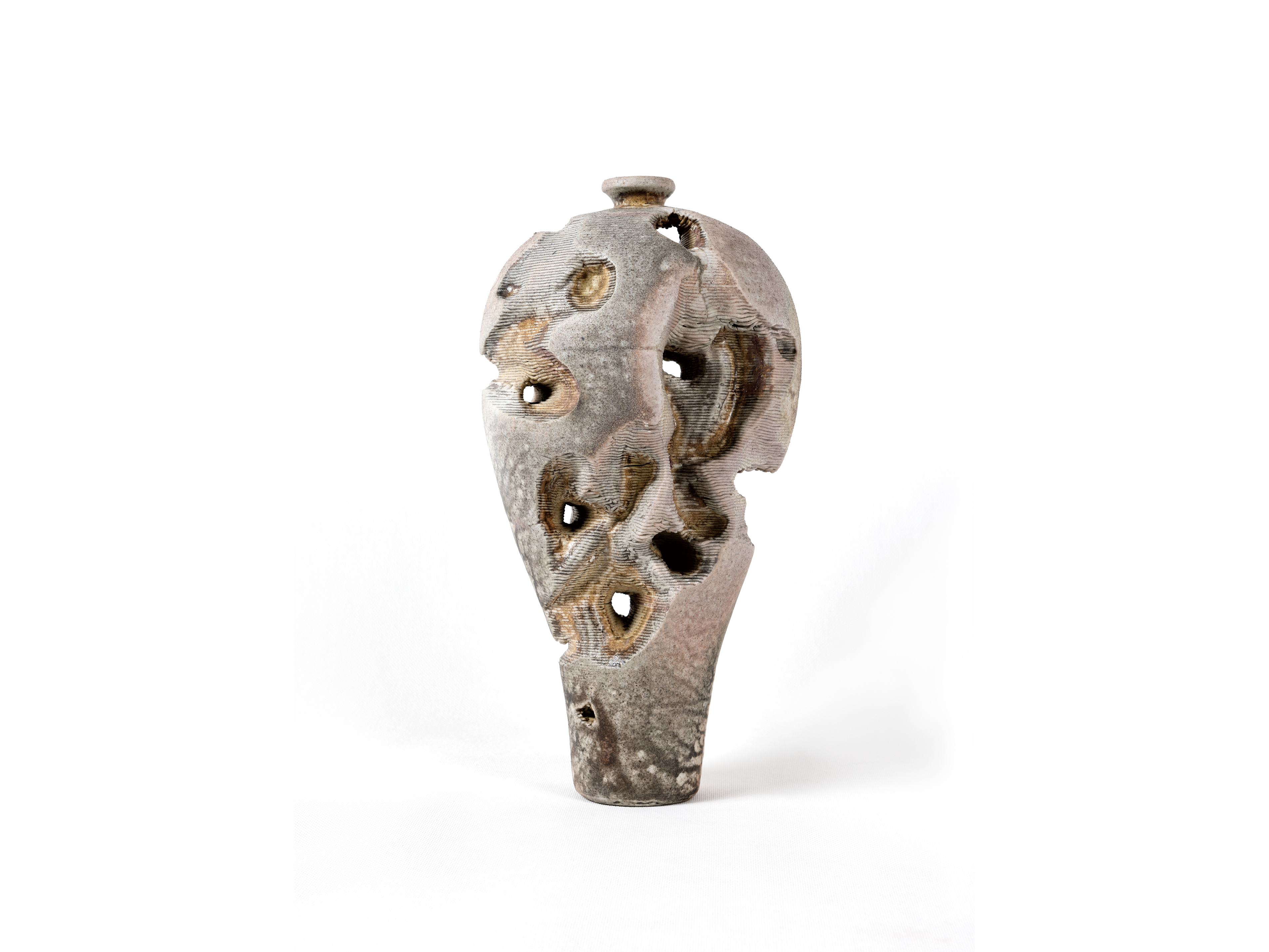 王欣此次入選作品為“靜·石語”系列。該系列以太湖石的自然形態為核心意象,以陶瓷為媒介,通過泥條層層疊加的塑造方式呼應太湖石歷經歲月洗禮後形成的肌理與孔隙結構,並採用柴窯燒制,使窯火穿透其間,轉化出豐富而自然的視覺效果。作品在偶然與必然之間尋求平衡,重塑了陶瓷藝術中水、火、土交融生成的獨特美感,呈現出自然意象、人文思考與當代陶藝語言之間的深層對話。