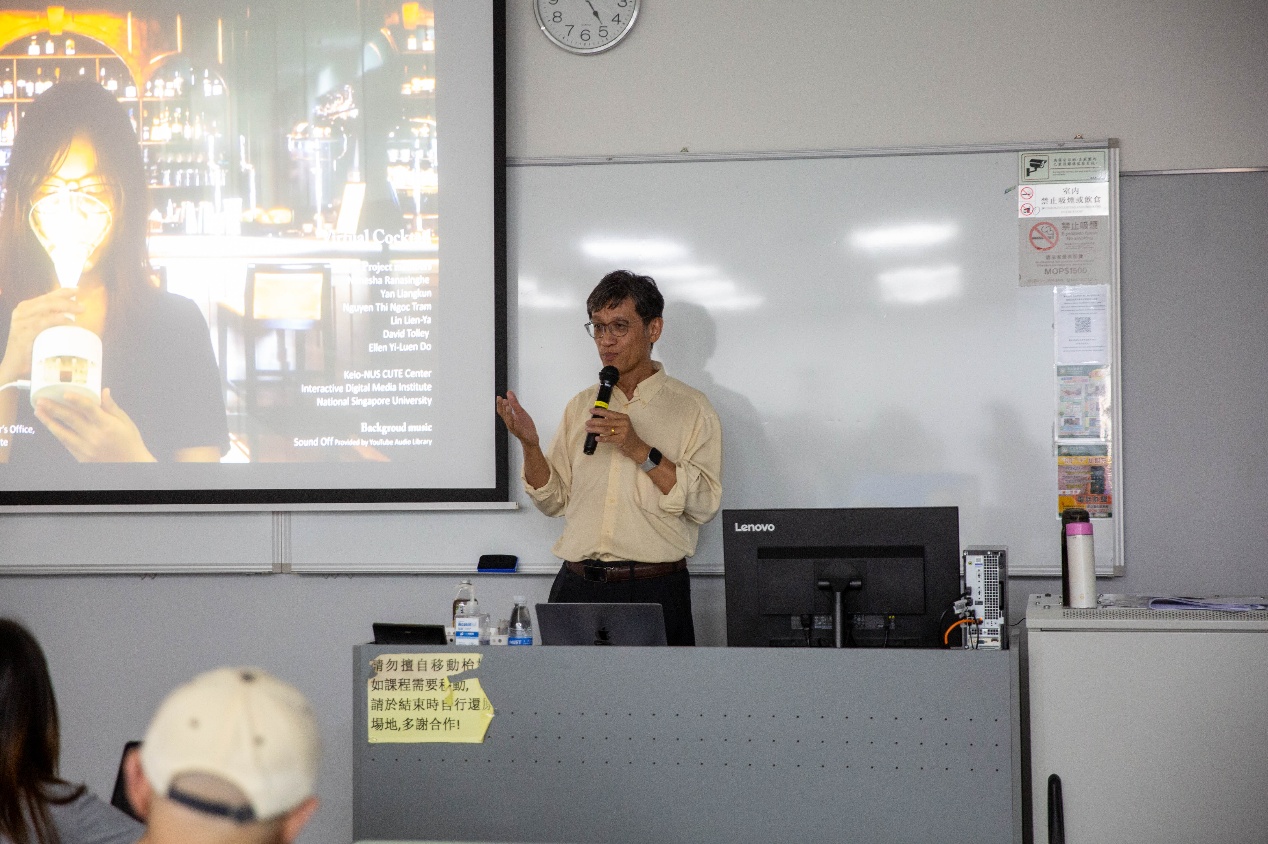 4月16日下午,由人文藝術學院主辦的“藝術名家系列講座”在澳門科技大學R328舉行。新加坡國立大學工業設計系副教授Yen Ching Chiuan應邀作題為“Multi-Sensory Extended Reality for Augmenting Learning: A Journey from VR to XR at CUTE”的學術講座,分享了其團隊在多感官擴展現實(XR)在設計教育、醫療訓練及動物福祉等領域的研究與實踐。
