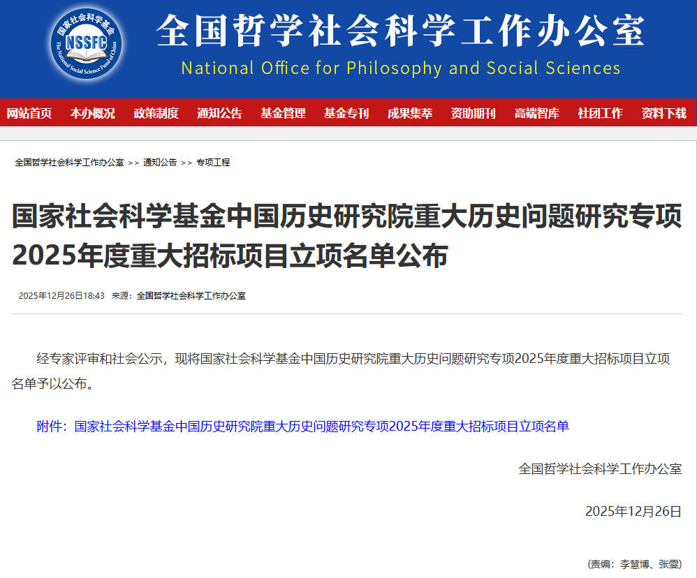2025月12月26日,全國哲學社會科學工作辦公室公佈國家社會科學基金中國歷史研究院重大歷史問題研究專項2025年度重大招標項目立項公佈,由澳門科技大學社會和文化研究所牽頭組織申報、人文藝術學院建築學...