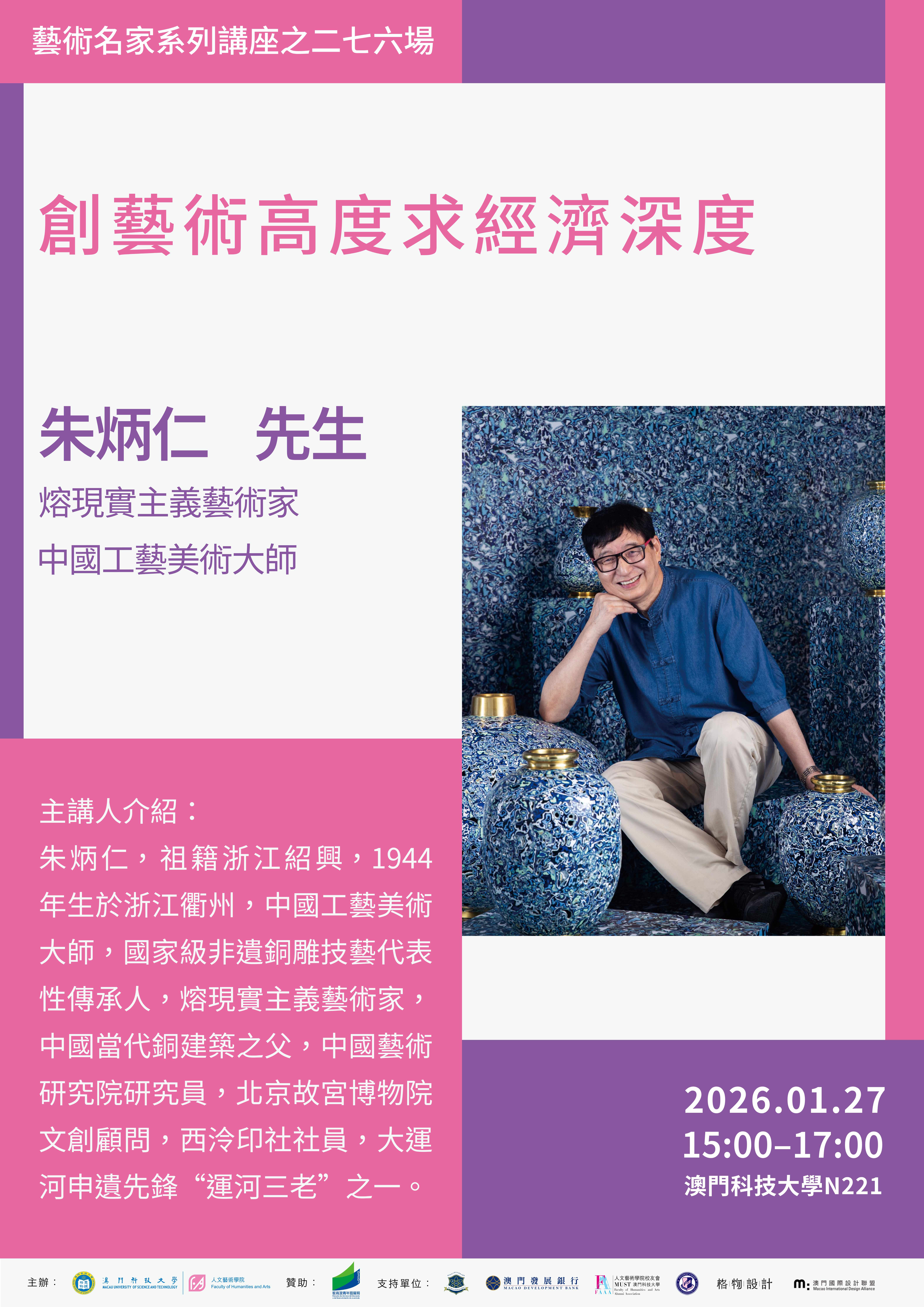 主题:创艺术高度求经济深度主讲嘉宾:朱炳仁先生讲座日期及时间:2026年1月27日 15:00-17:00地点:N221